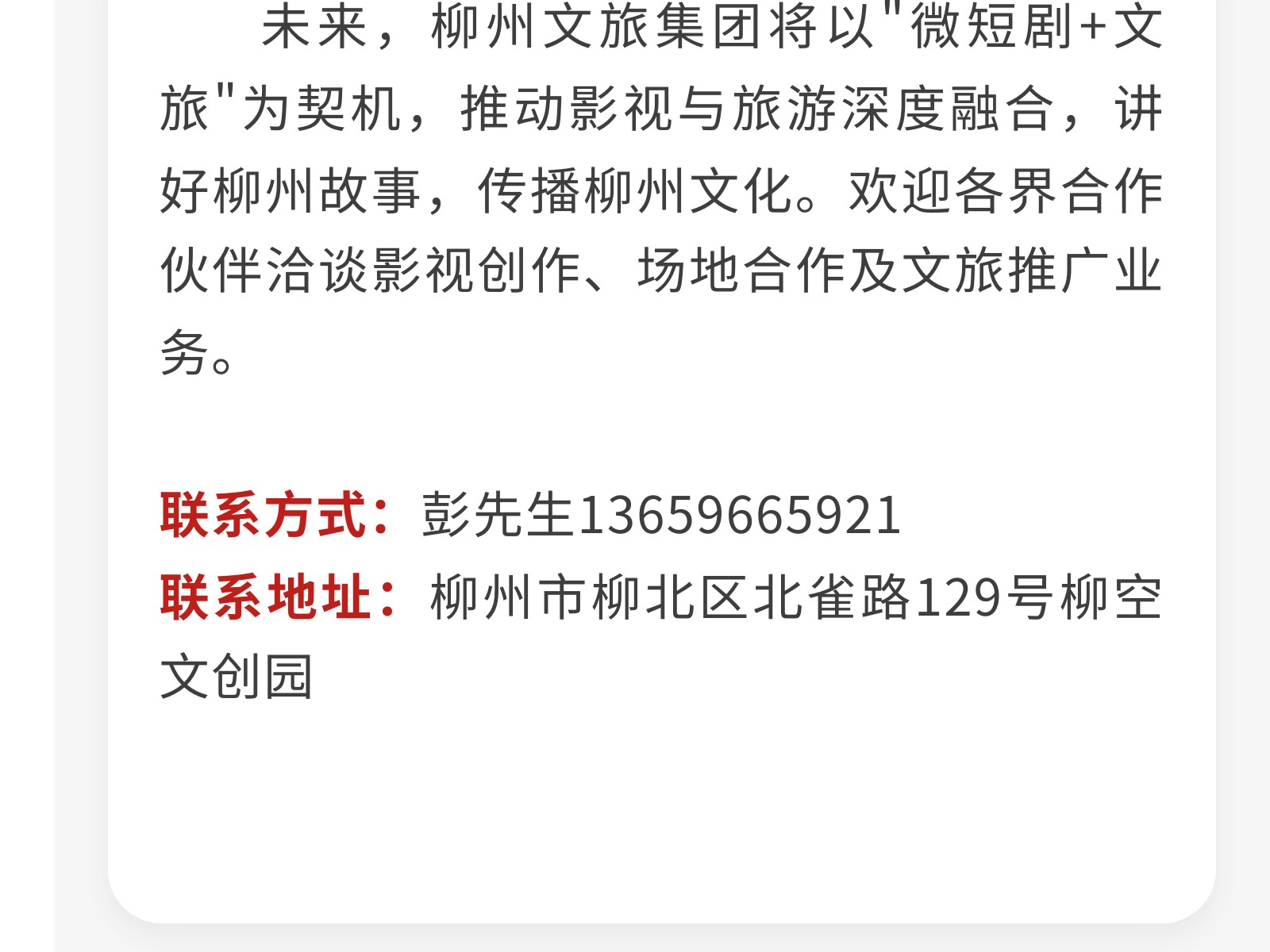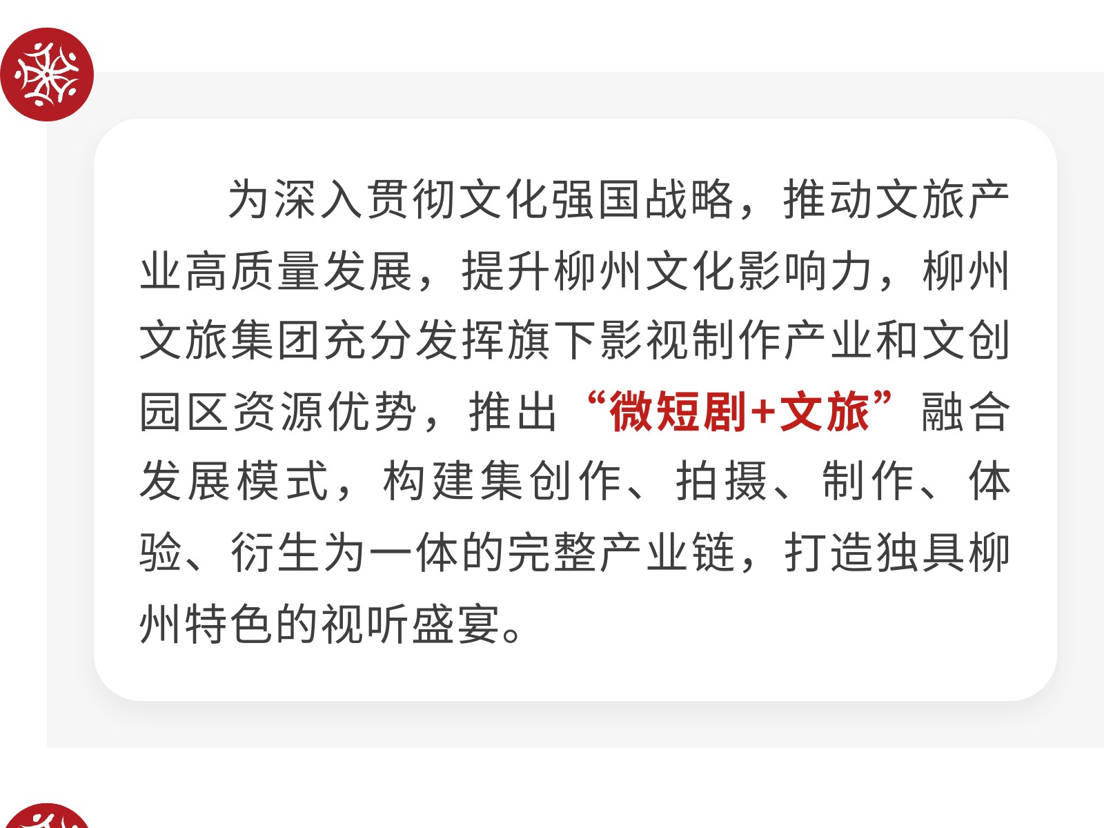 柳州文旅集團探索“微短劇+文旅”融合發(fā)展新模式 發(fā)布時間:2025年07月02日 10時來源:本站原創(chuàng)瀏覽:90 人次